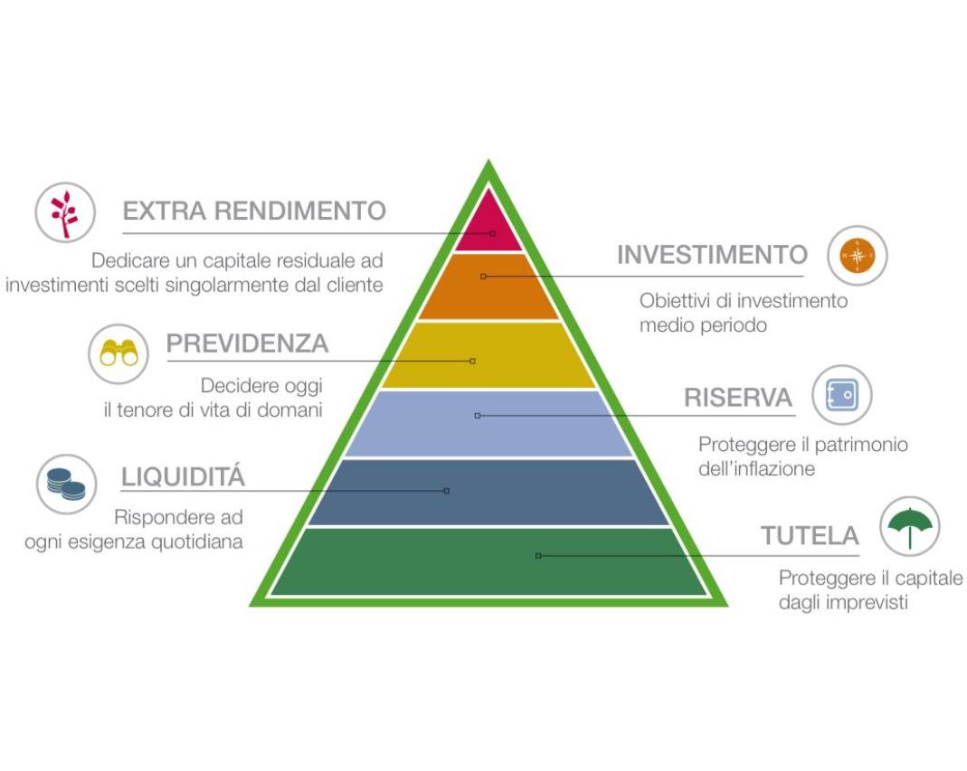 Ti aiutiamo ad allocare in modo equilibrato le risorse per ogni esigenza e a definire strategie di investimento distinte per ciascun area di bisogno nel rispetto del livello di rischio e dell’orizzonte temporale attribuito a ciascuna.